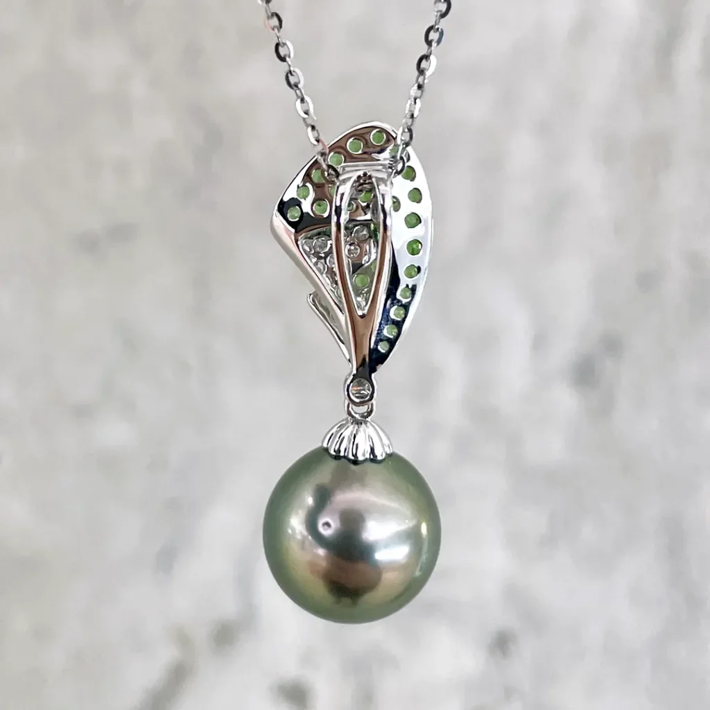 Black Tahitian Pearl Tsavorite & Diamond Pendant