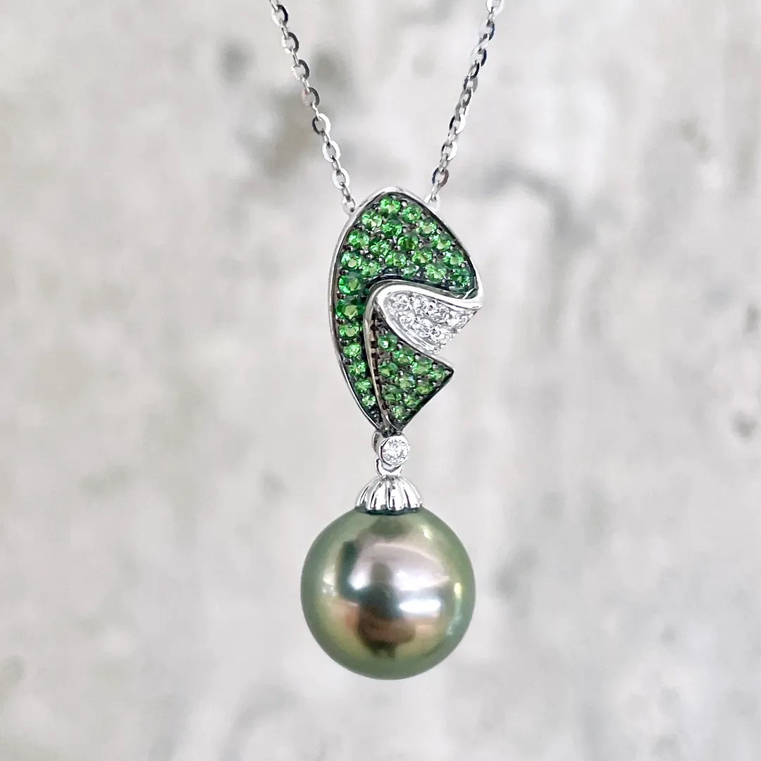 Black Tahitian Pearl Tsavorite & Diamond Pendant