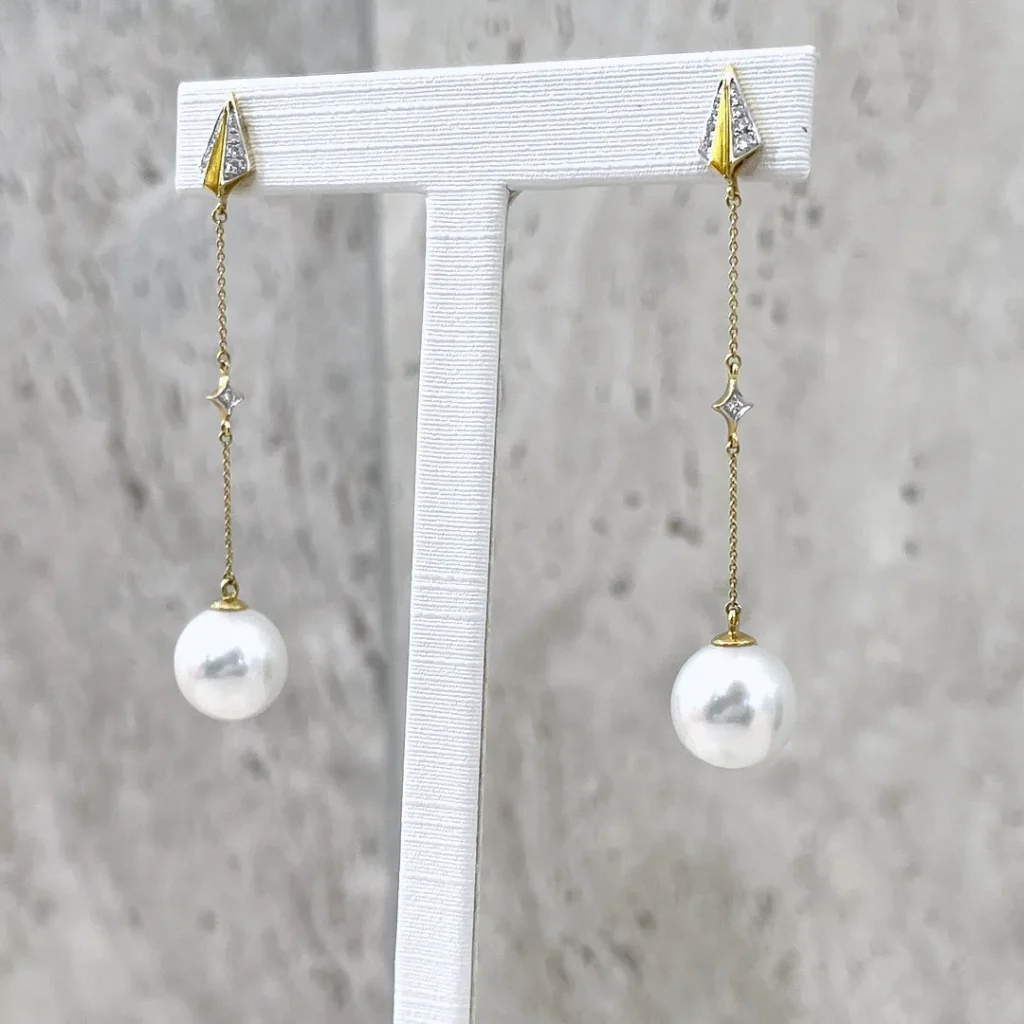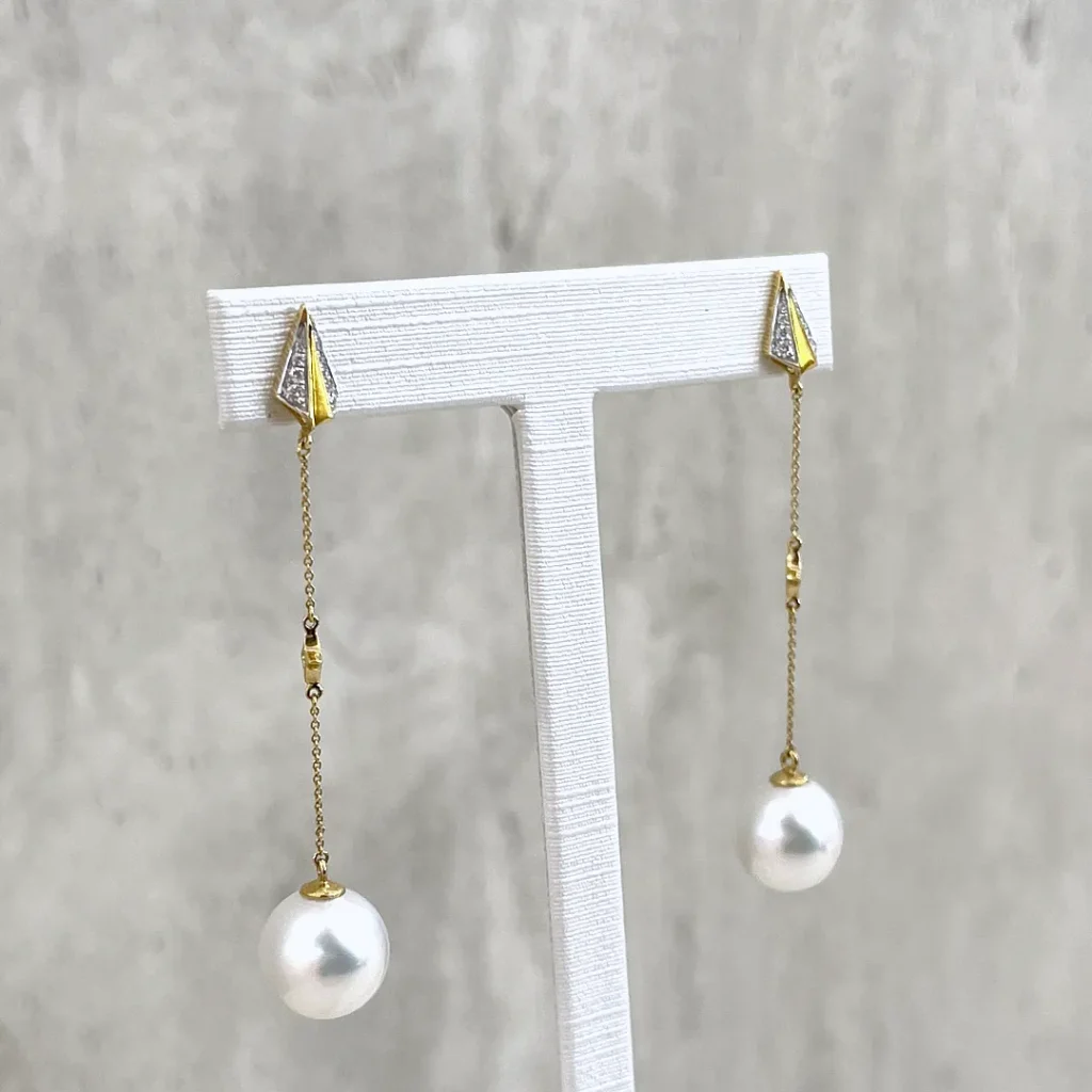 White South Sea Pearl Geometric Diamond Drop Earrings