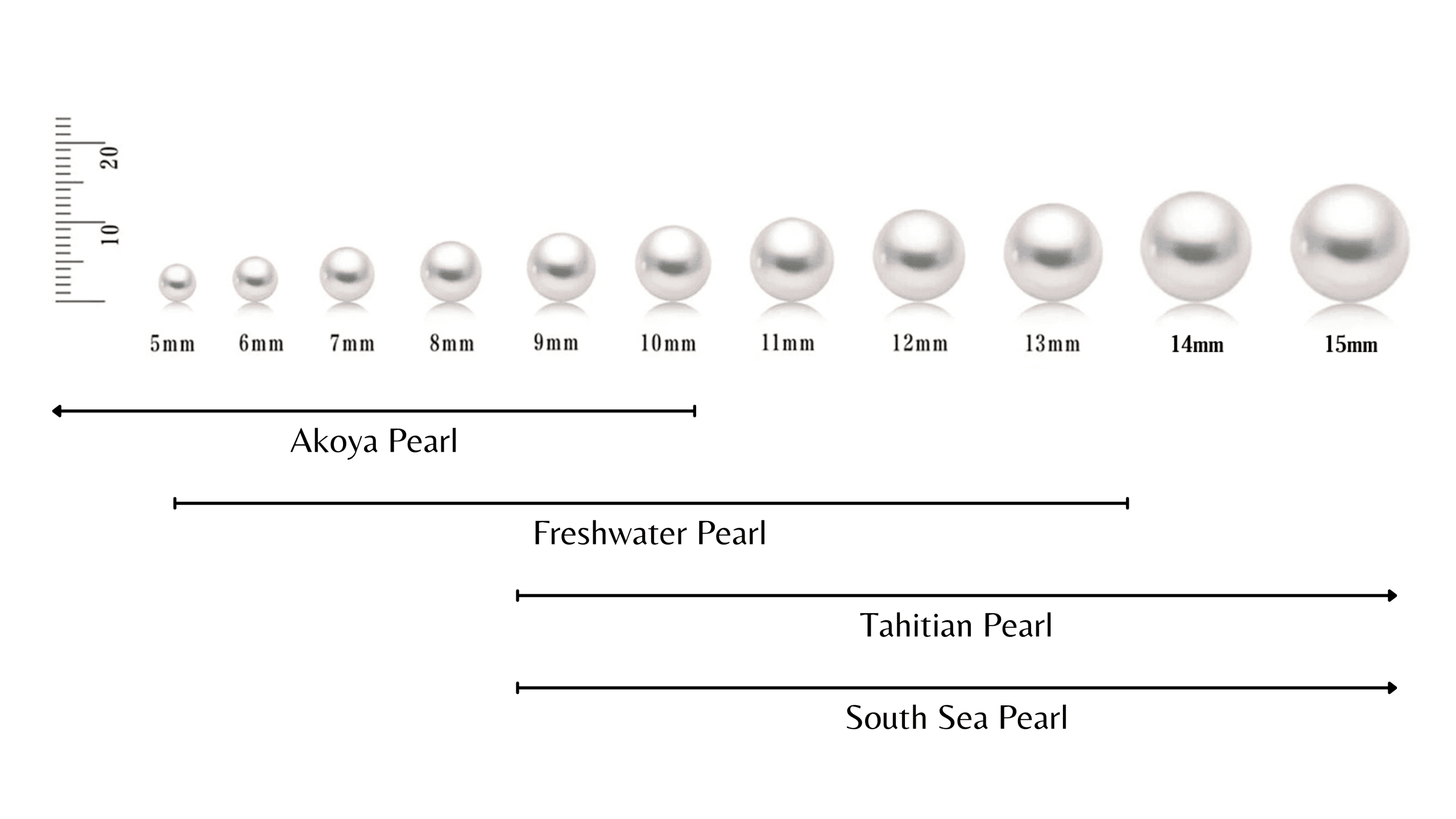 Pearl size is measured by its diameter in millimetres. Whether you prefer a subtle, smaller pearl or a bold, larger statement piece, the right size enhances both your style and the overall aesthetic of your jewellery.
