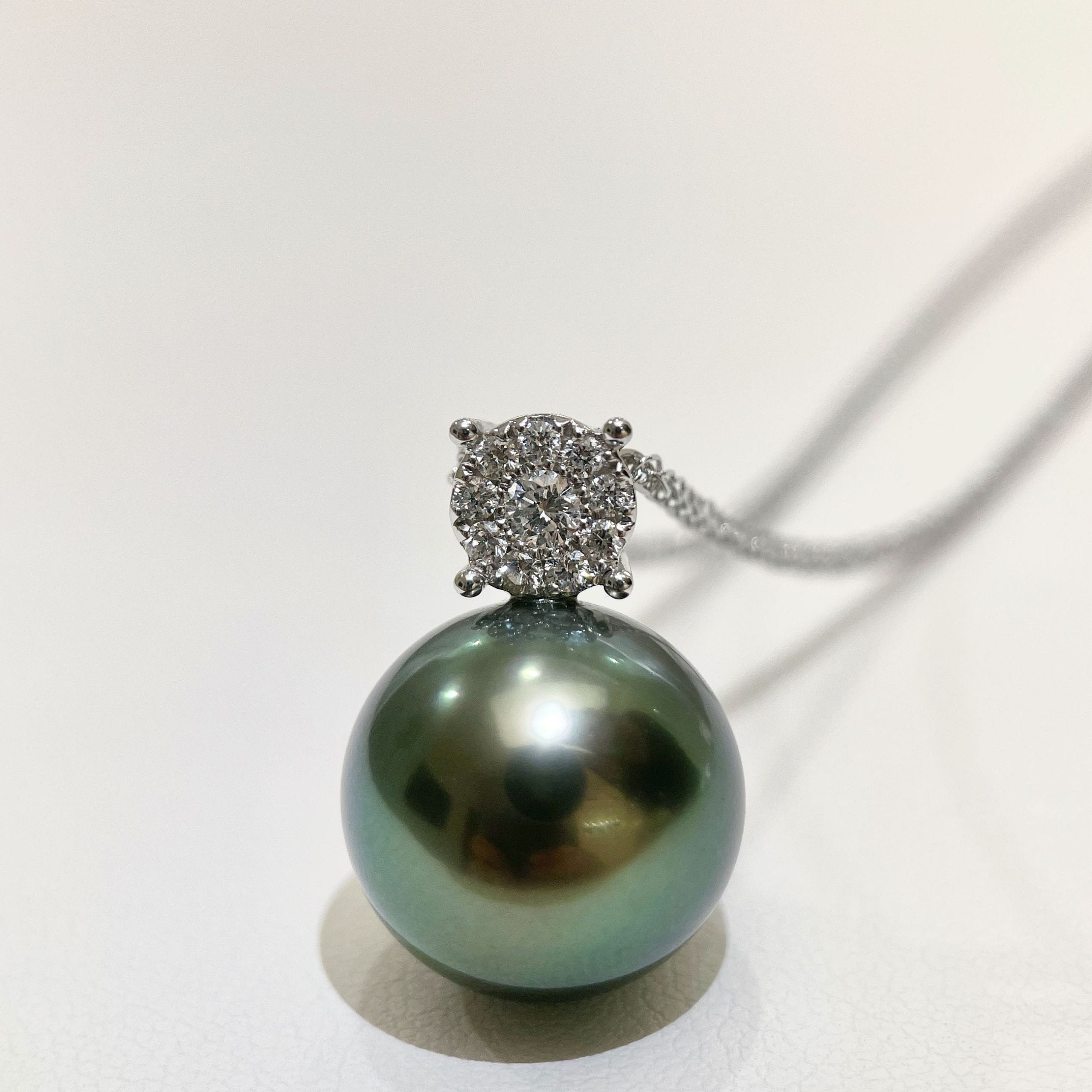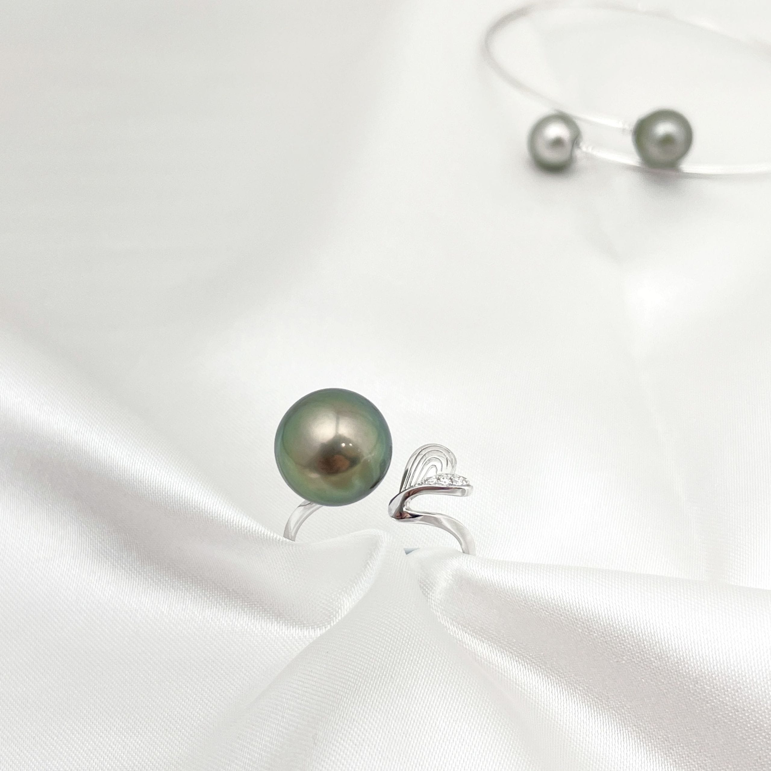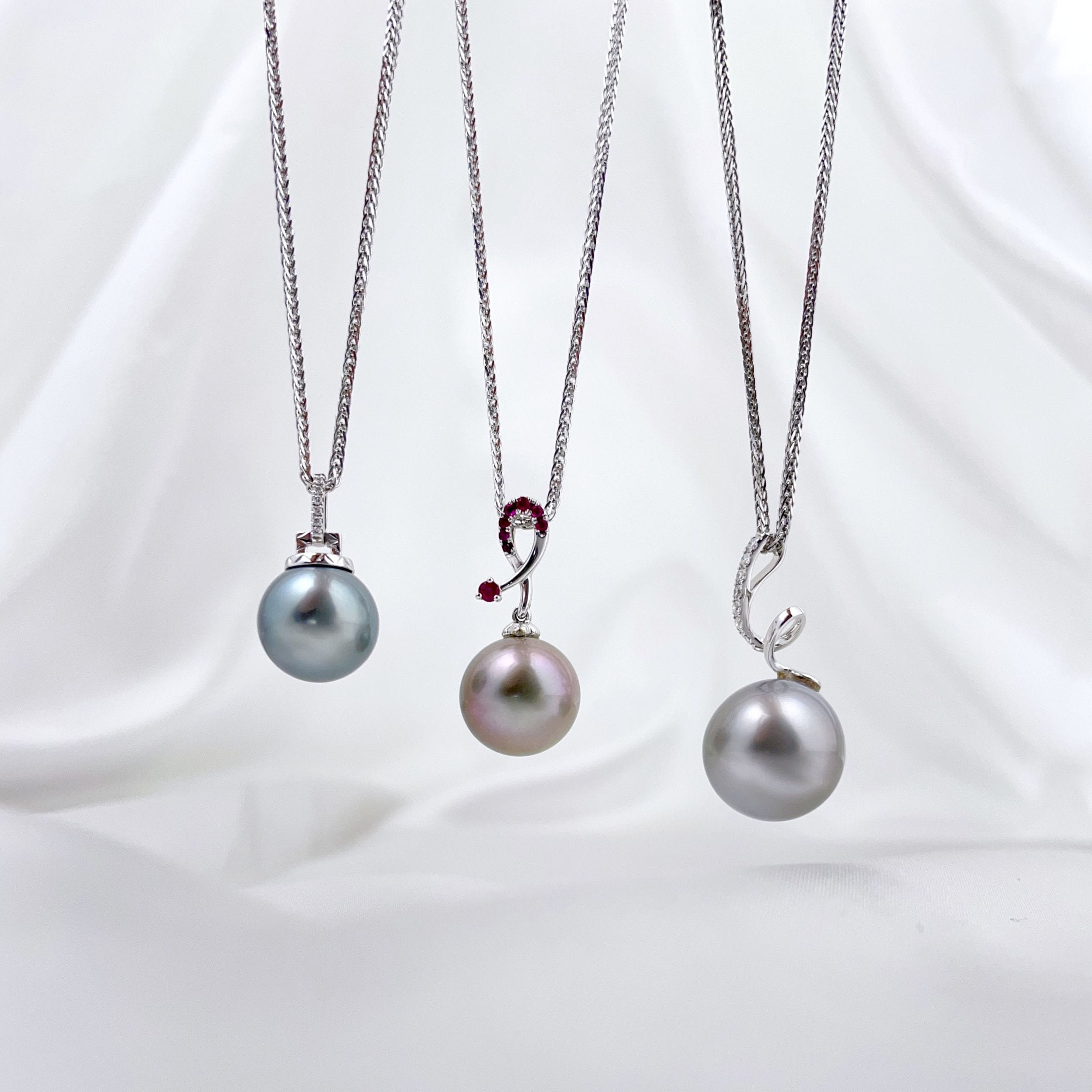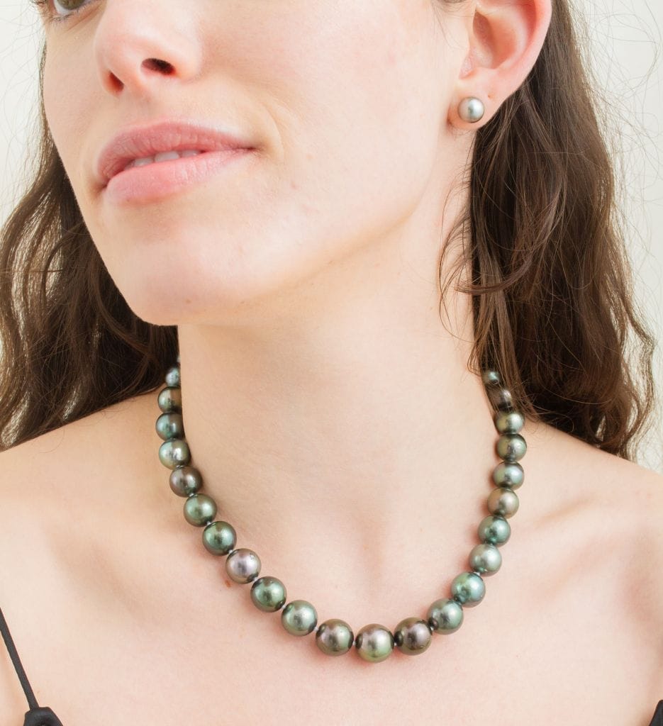 Exotic Black Tahitian Pearls: Often referred to as “black pearls,” these treasures dazzle with deep, mysterious hues ranging from peacock green to charcoal grey.