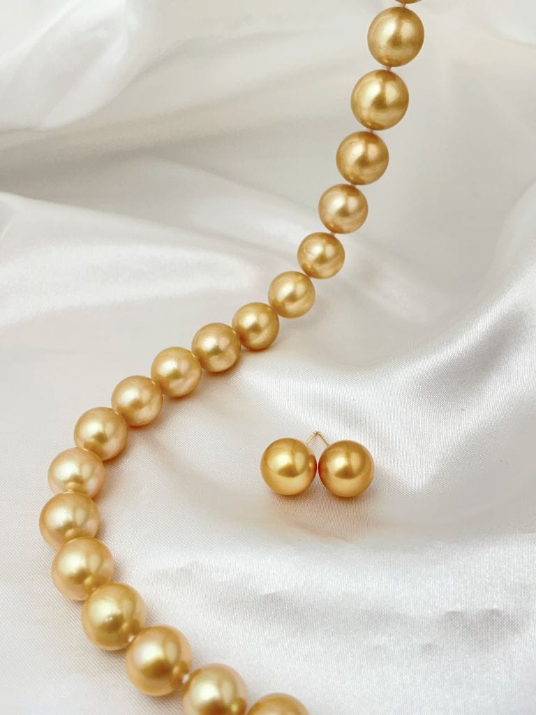 These pearls range from 9mm to 18mm and are prized for their warm, golden tones, which can vary from light champagne to deep, rich gold.