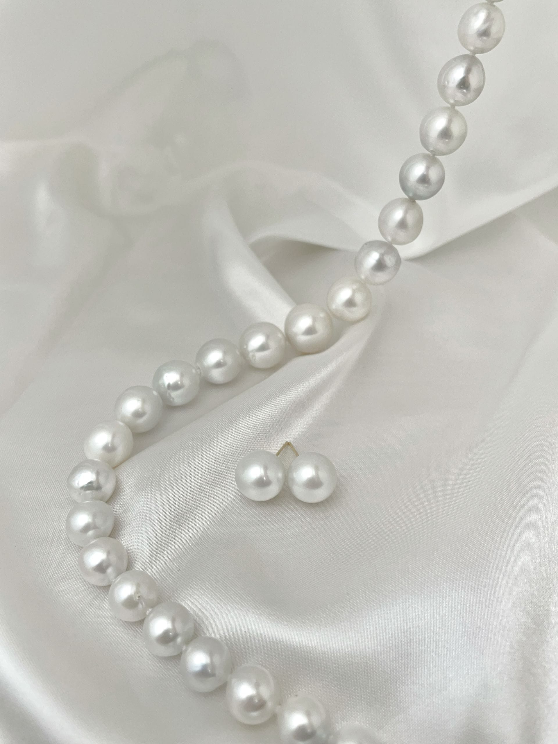 Known for their luxurious appearance, White South Sea pearls are highly valued and often used in statement jewellery such as necklaces and earrings. Cultivated in Pinctada maxima oysters, the pearls take 2 to 4 years to form.